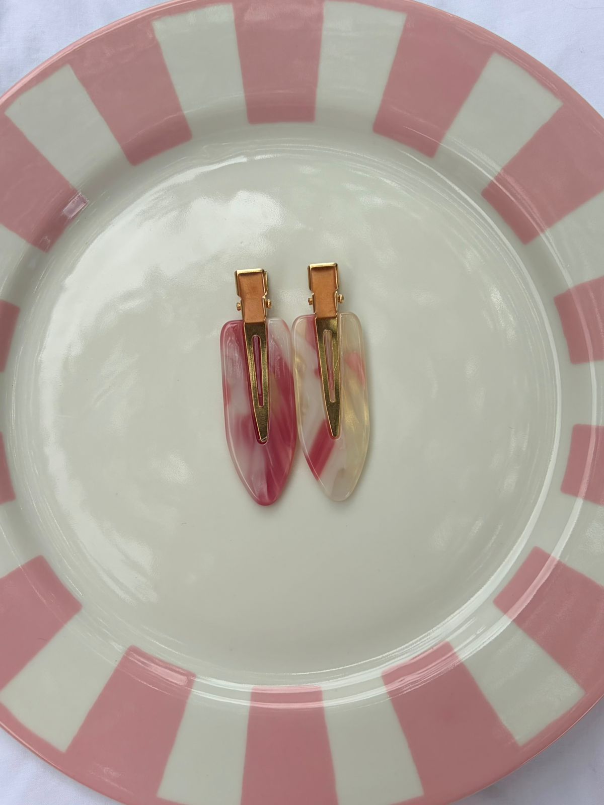 These stylish hair pin clips are perfect for keeping your hair neatly out of your face while doing makeup. Featuring a soft mix of white and pink, they create a delicate, feminine look that adds a playful touch to your beauty routine. Lightweight yet secure, the clips hold your hair in place without slipping, making it easy to focus on your makeup. Combining practicality with a charming two-tone design, these hair pins are both functional and a lovely accessory for everyday use or special beauty sessions.